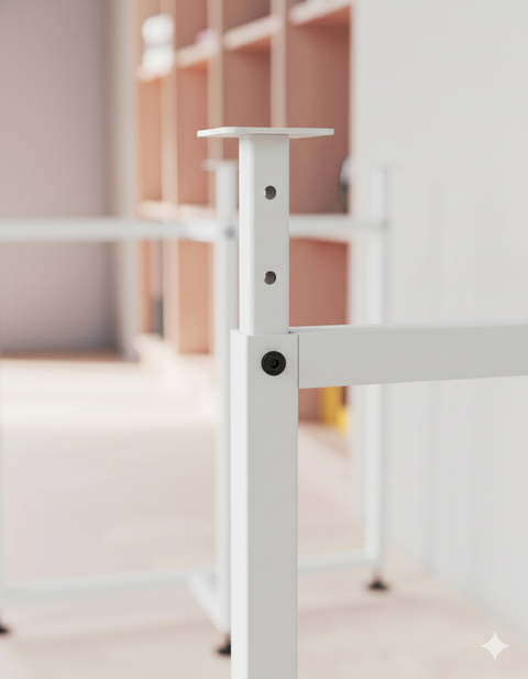 Die Oberfläche: eine durchgehende Schneidematte, robust, pflegeleicht und bereit für jedes Abenteuer. Widerstandsfähig gegenüber allem, was ein Kind in Bastel-, Lern- und Erlebnisdrang zu bieten hat – aber eben mit einem guten Style. Getragen von einem stabilen Stahlgestell, höhenverstellbar und mit sicherem Stand – für kreative Freiheit auf jedem Level.