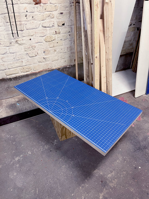 Eine robuste Tischplatte, welche vollflächig mit einer Schneid- und Bastelmatte beklebt ist. Auf einem stabilen, matt pulverbeschichteten und höhenverstellbarem Stahlgestell. Praktisch und widerstandsfähig gegenüber allem, was ein Kind in Bastel-, Lern- und Erlebnisdrang zu bieten hat.